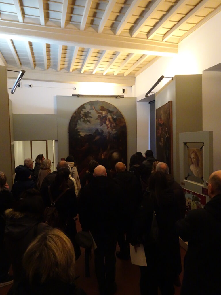 Fino ad oggi non si era riusciti ad attribuire l’opera in maniera certa ma il rinvenimento di un disegno venduto all’asta nel 2014 ha permesso di assegnare la tela a Giovanni Battista Lenardi, pittore romano allievo di Lazzaro Baldi.