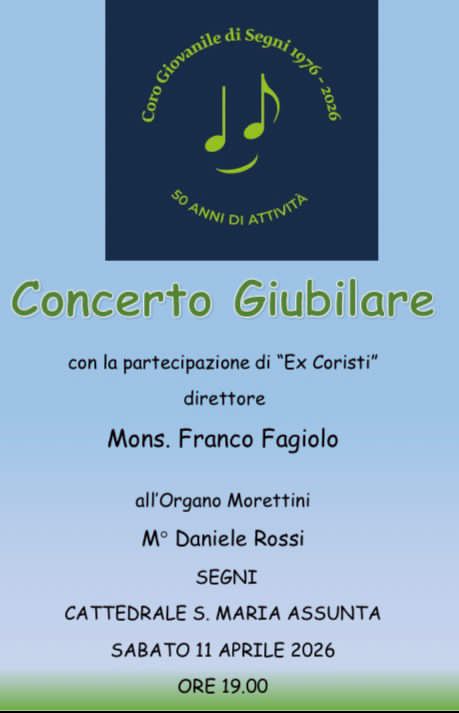 Sabato 11 Aprile, Segni: Concerto Giubilare del CORO GIOVANILE