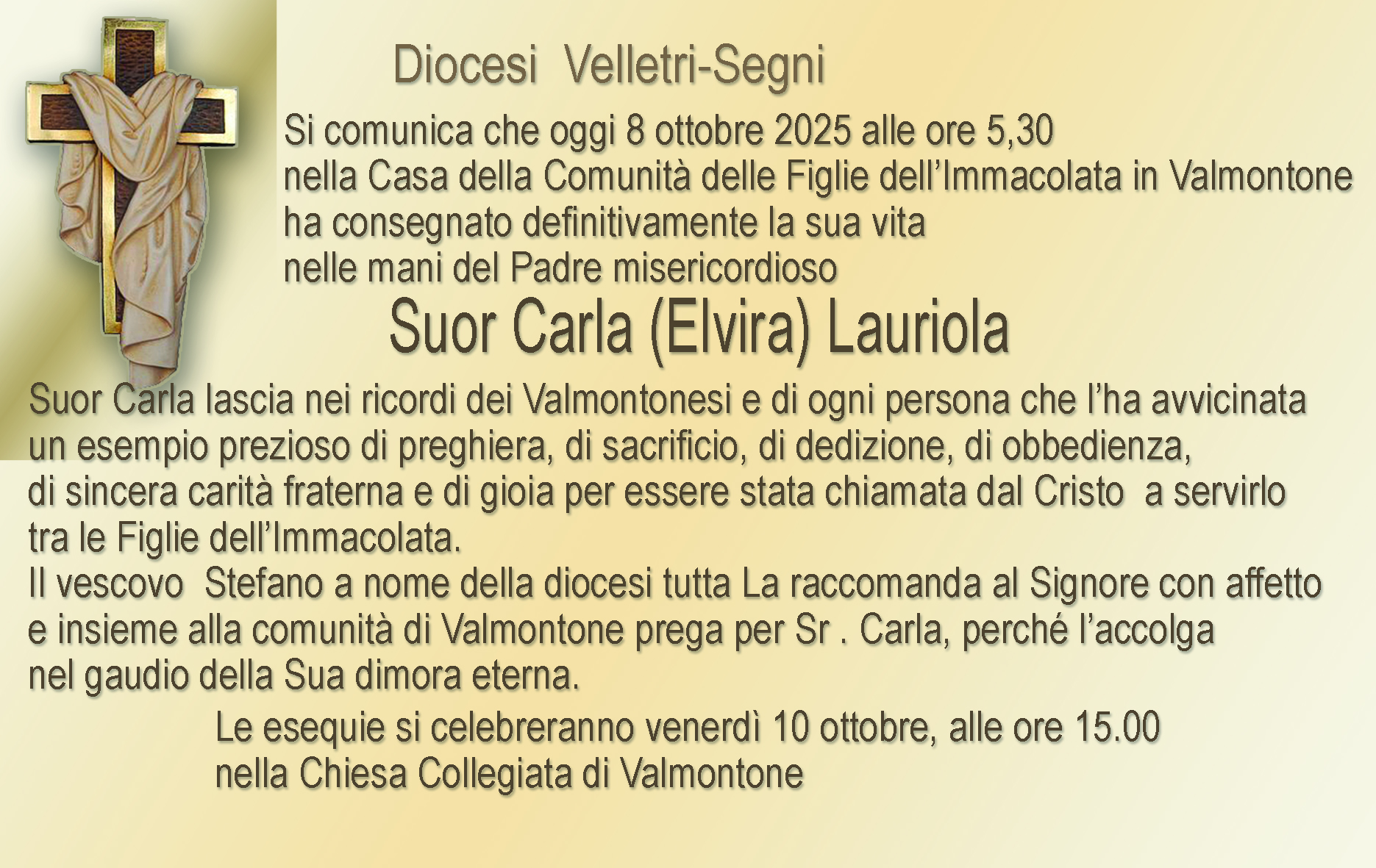Valmontone, Figlie dell’Immacolata – Suor Carla è tornata alla Casa del Padre